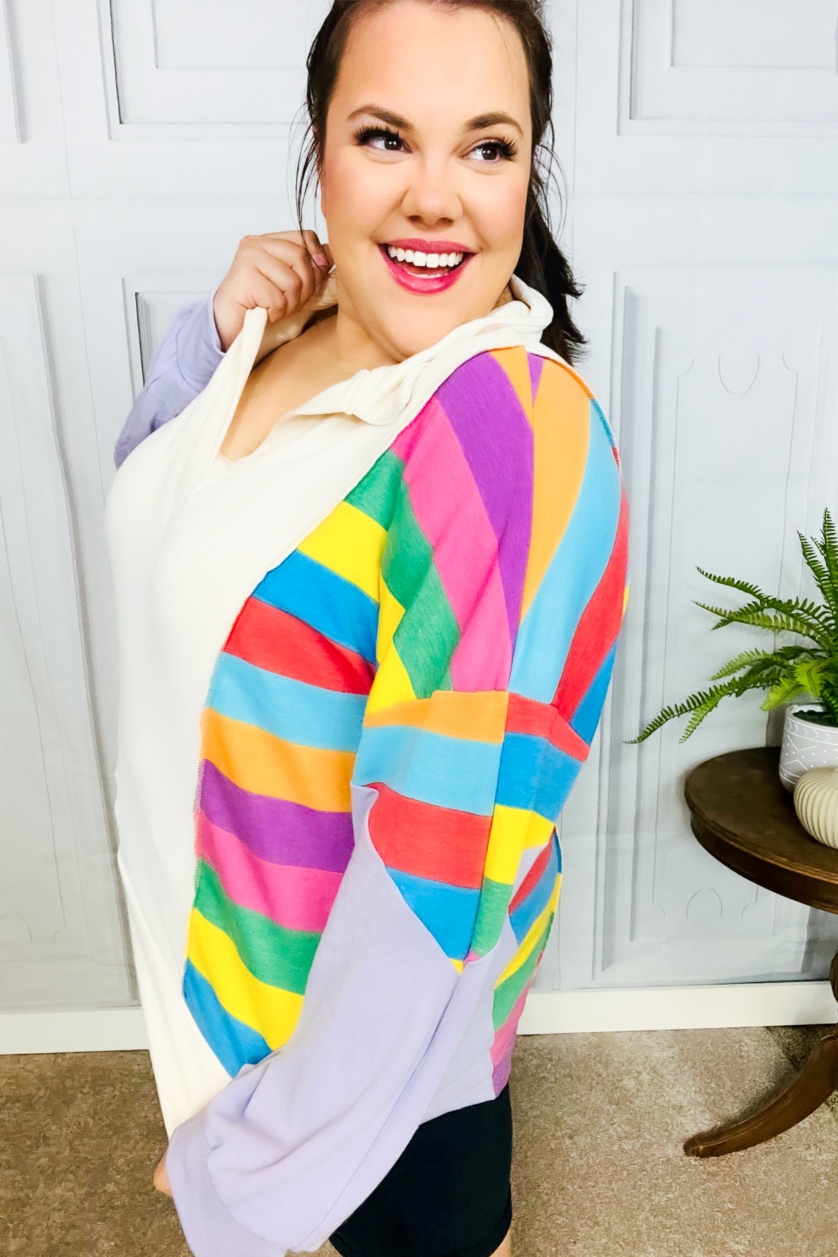 Feeling Bold Lilac Multicolor Stripe Collared V Neck Pullover