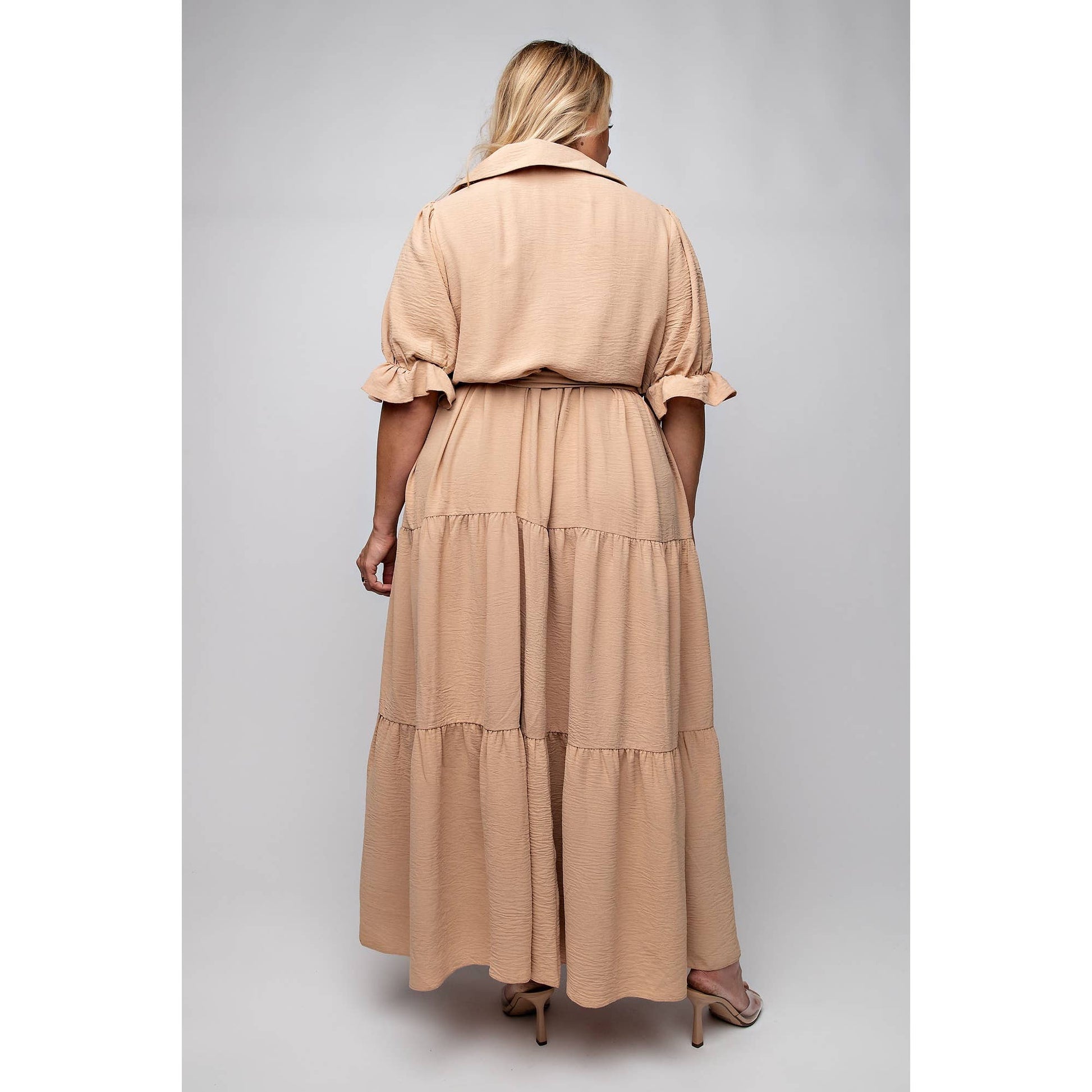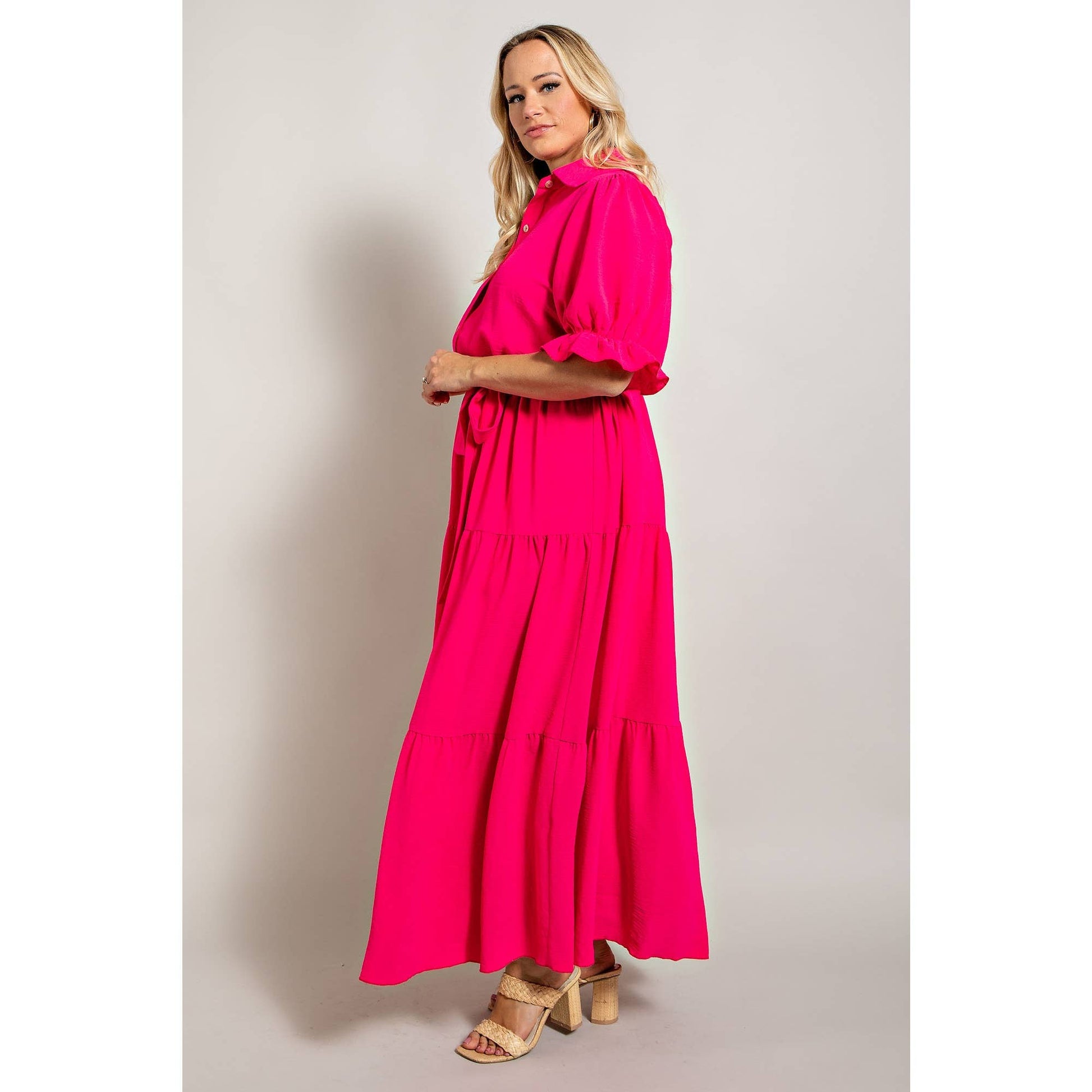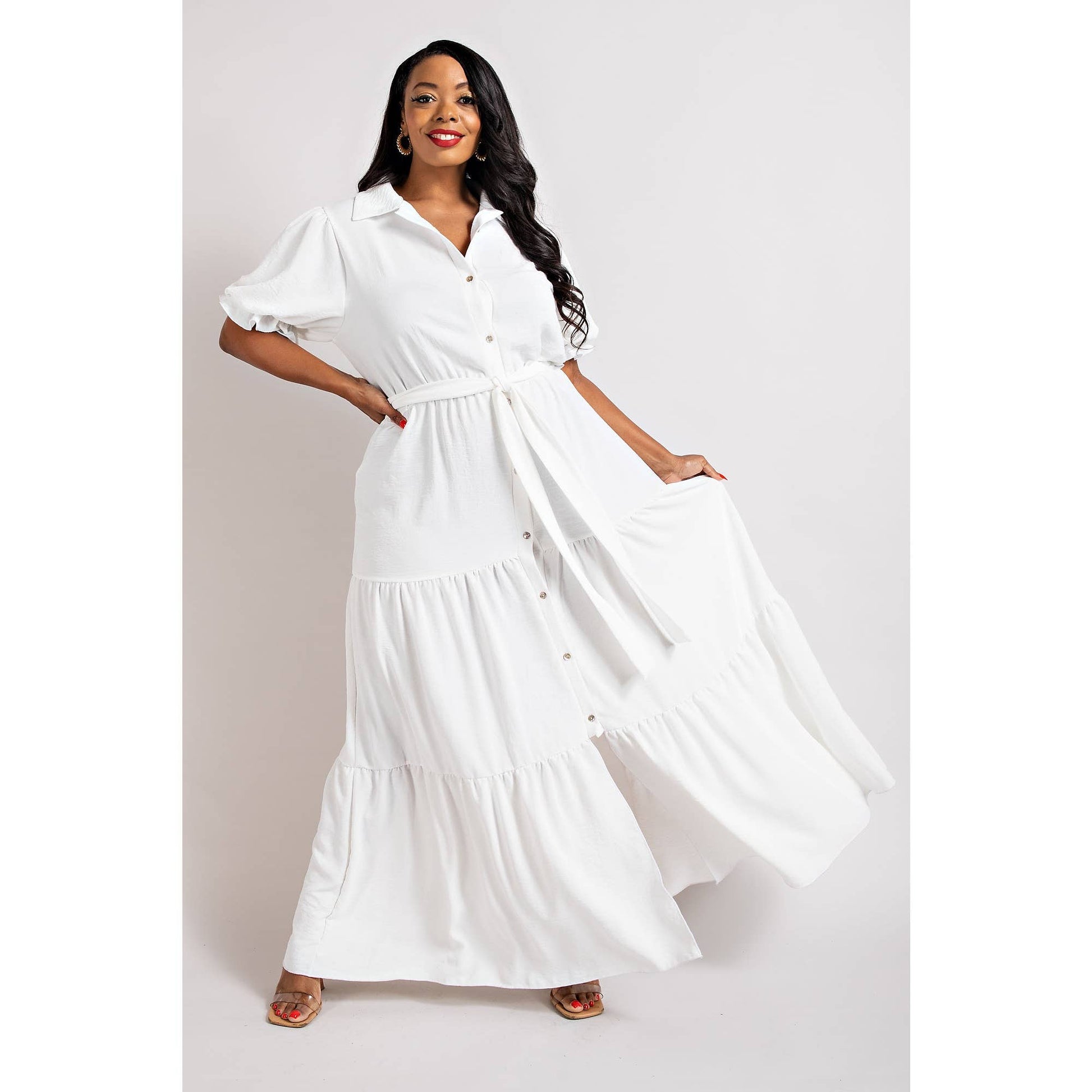BUTTON DOWN MAXI SHIRT DRESS WITH TIERED HEM