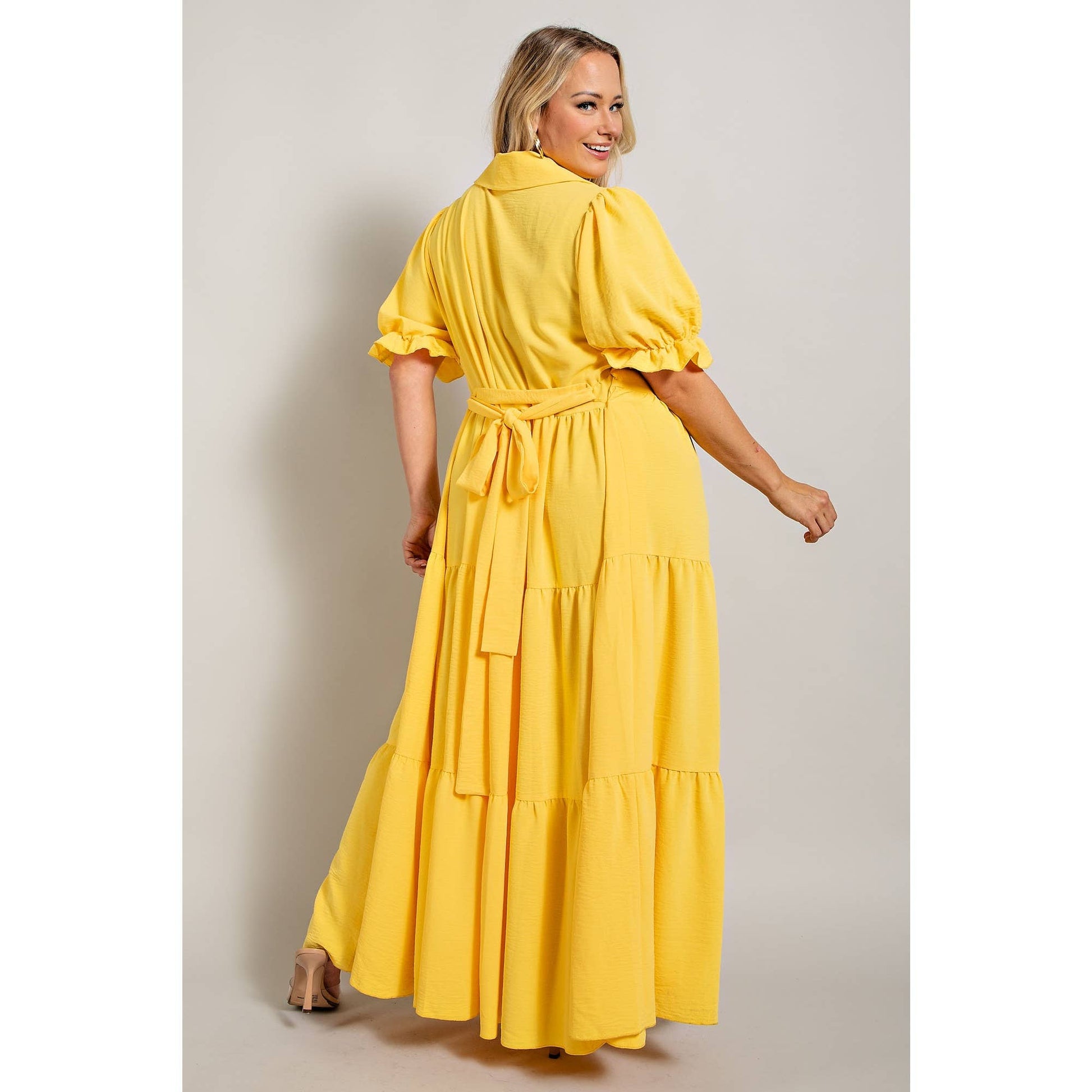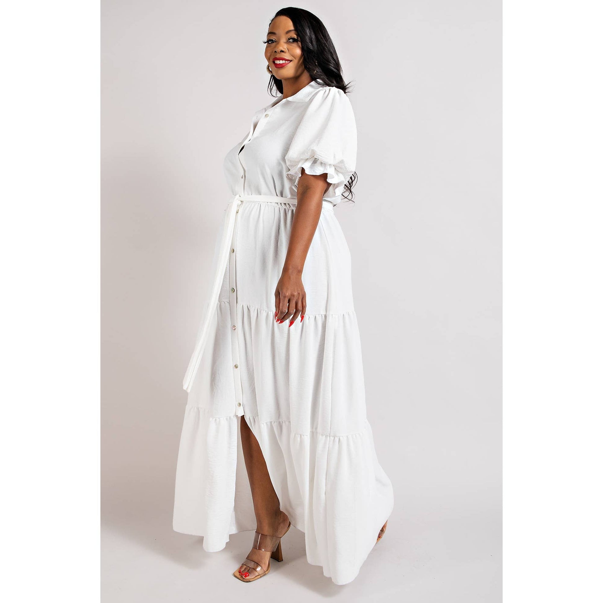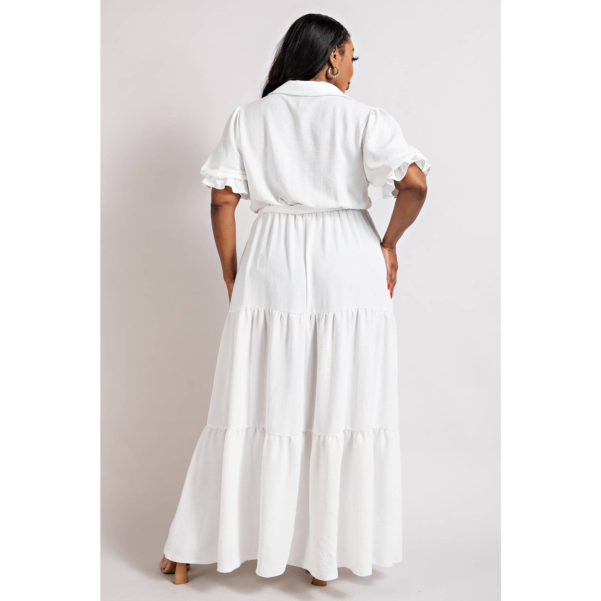 BUTTON DOWN MAXI SHIRT DRESS WITH TIERED HEM